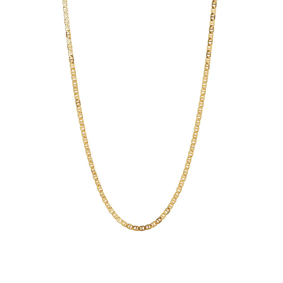 Flot og enkelt kæde med flade links, der giver et skønt spil i halskæden. Bær den alene eller lav dit eget mix sammen med andre fine kæder. Du kan også tilføje et fint, lille vedhæng. Materiale: 18 karat forgyldt sterling sølv. Halskæden måler i alt 37 cm + 8,5 cm. forlænger kæde, så kæden i alt måler 45,5 cm