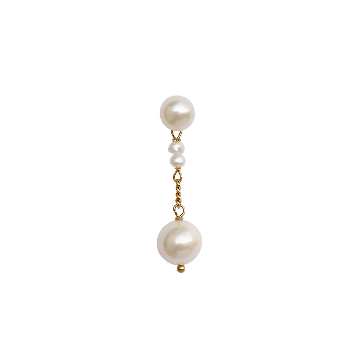 Med denne ørering får du et klassisk design med lækre detaljer. Øreringen består af en ørestik, hvorfra der hænger en lille kæde pyntet med bittesmå perler og slutter med en stor, smuk og skinnende ferskvandsperle. Med sine rene linjer og klassiske design er denne perleørering den perfekte accessory til dit mix og match look. Mix med andre øreringe fra STINE A Jewelry med perler og ædelsten og skab et personligt og unikt look.